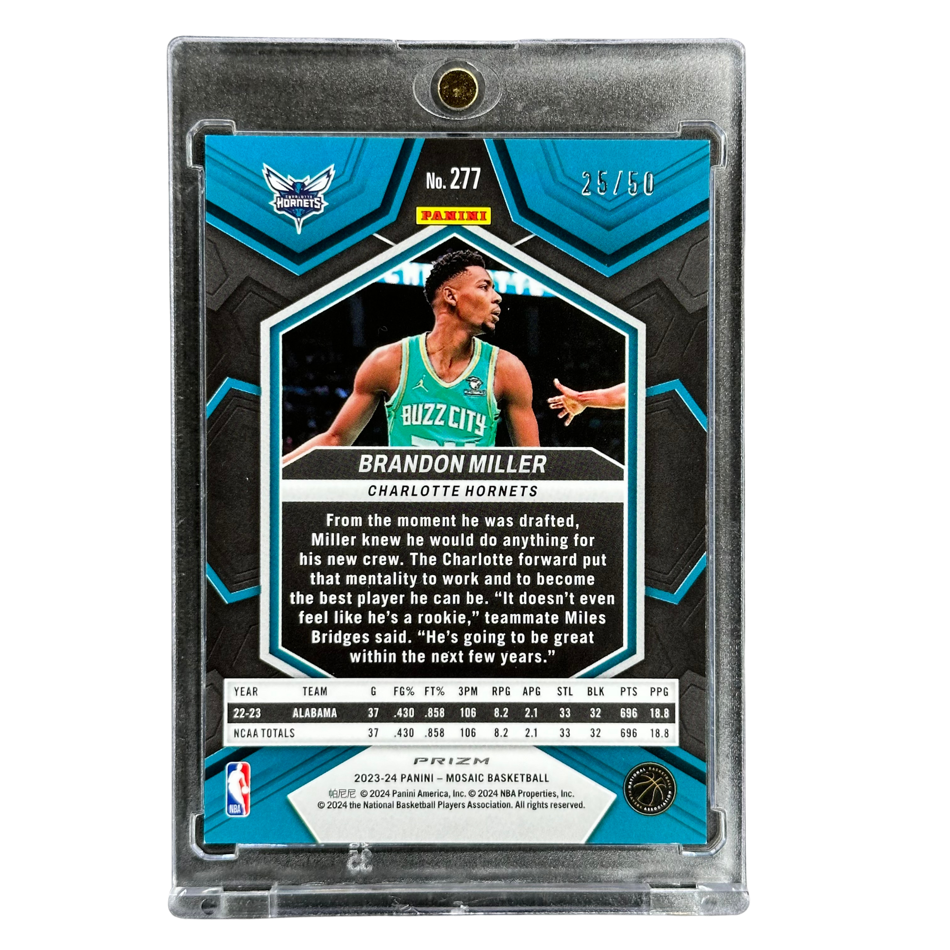 Brandon Miller 2023 Mosaic City Debut RC Rookie Card 25/50 #277