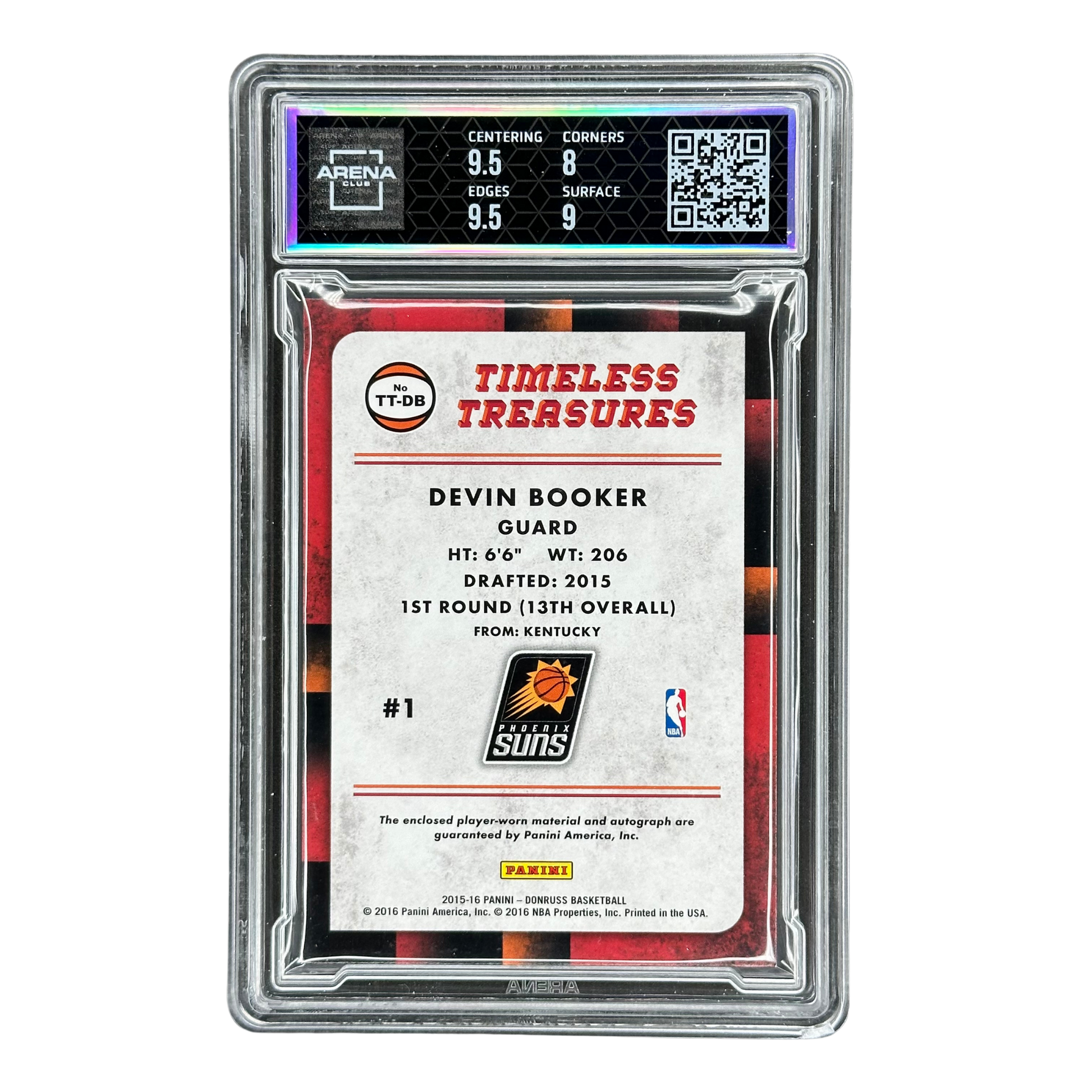 Devin Booker 2015 Donruss Timeless Treasures Jersey Auto RC Rookie Card 13/99 Arena Club 8.5 #TT-DB