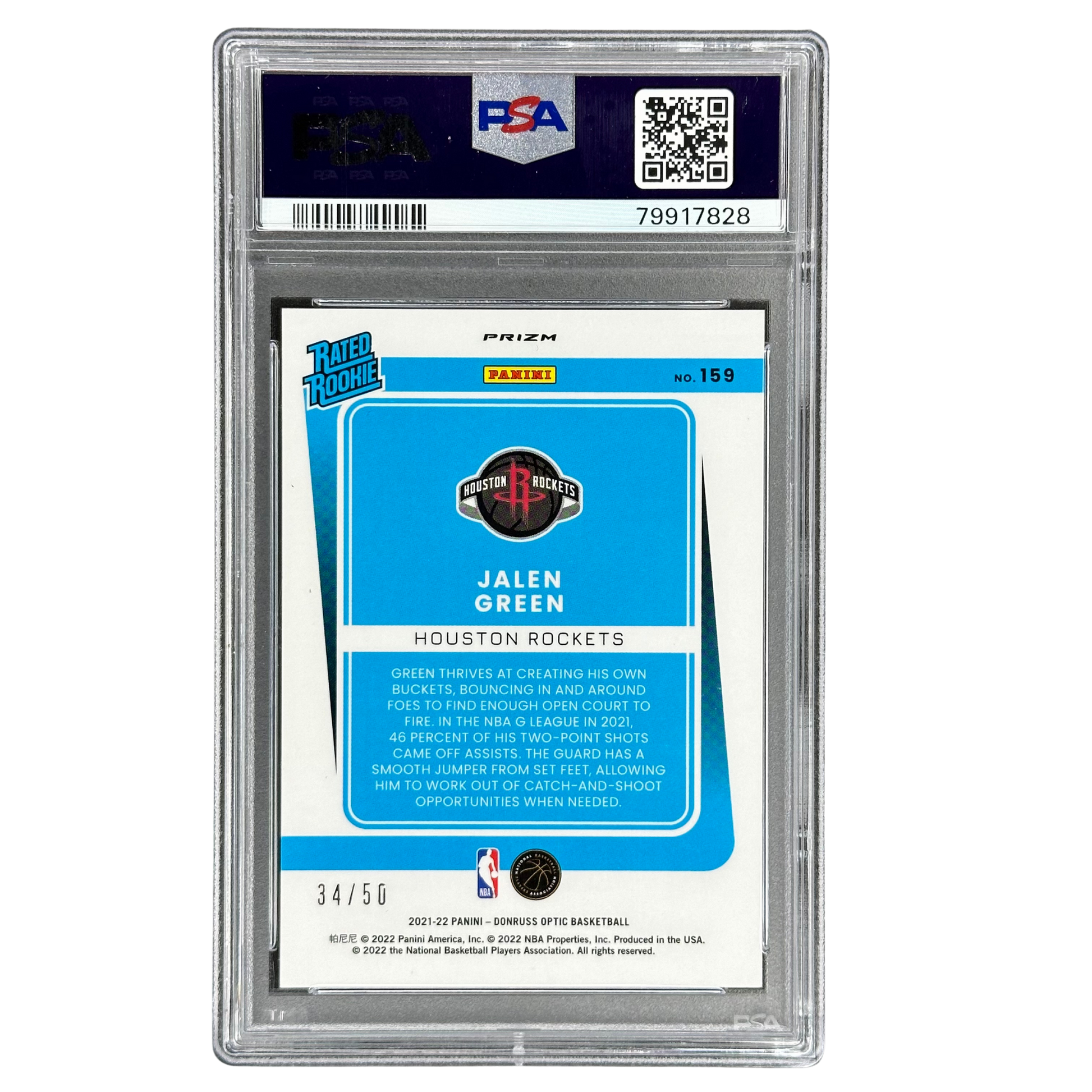 Jalen Green 2021 Optic Fast Break Blue RC Rookie Card 34/50 PSA 10 #159