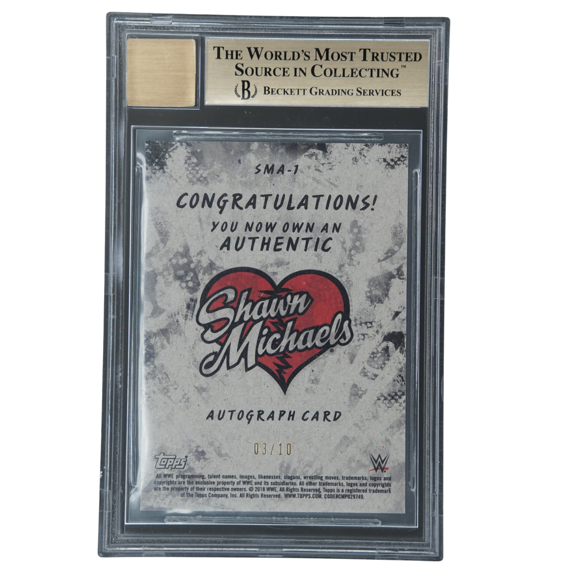 Shawn Michaels 2018 Heritage 3/10 Auto BGS 9.5 #SMA1